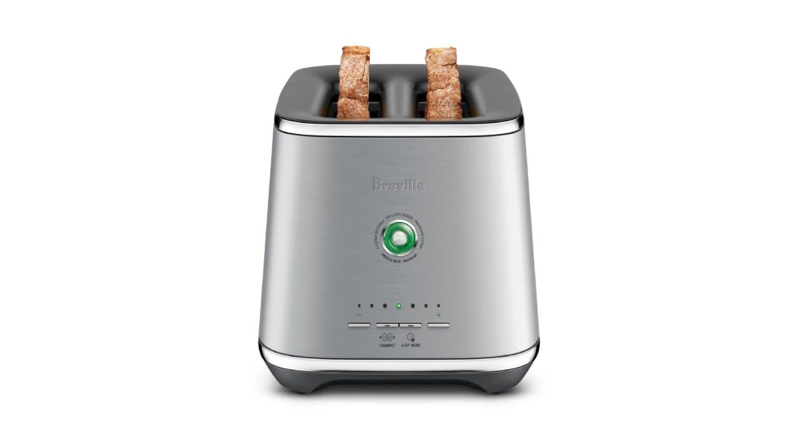 Enjoy reliable, even toast with the Breville Eye Q 850 Auto 2 Slice Toaster, which toasts by color instead of time for steady results.